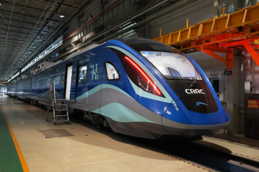 我国自主研制的首列氢能源市域列车成功达速试跑;