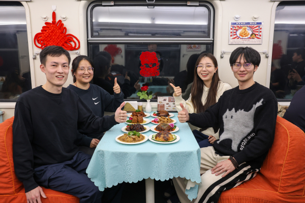 “今天真的是太惊喜了,真是没想到,爸爸妈妈再也不用担心我们过年吃不好了!”4名来东北旅游的大学生,在回家的列车上度过了一个充满家乡味的除夕夜,“我们陕西人过年就吃八大碗,真是‘撩咋咧’。”