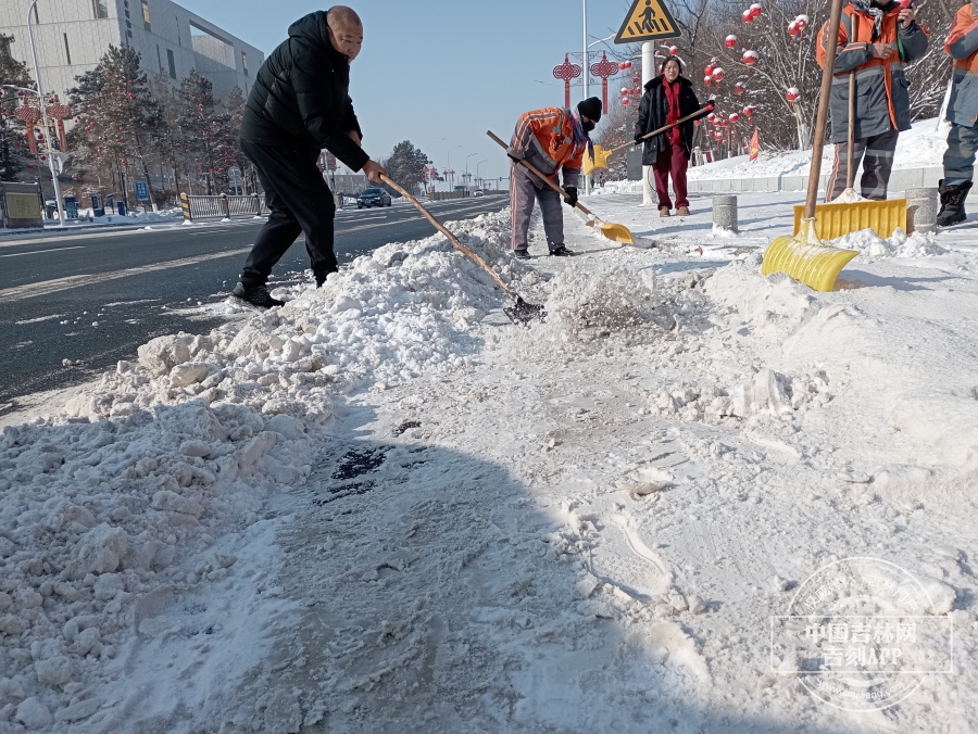 当天不到6点钟,长春市净月高新区城管局环卫科净发环卫第八标段环卫工人张艳珍,就和同事们一起来到了指定位置。“这场雪下了好几天,印象中好像好几年春节没见过这么大雪了。”天还没亮,张艳珍和同事们就带上工具,准备处理这些“小麻烦”。