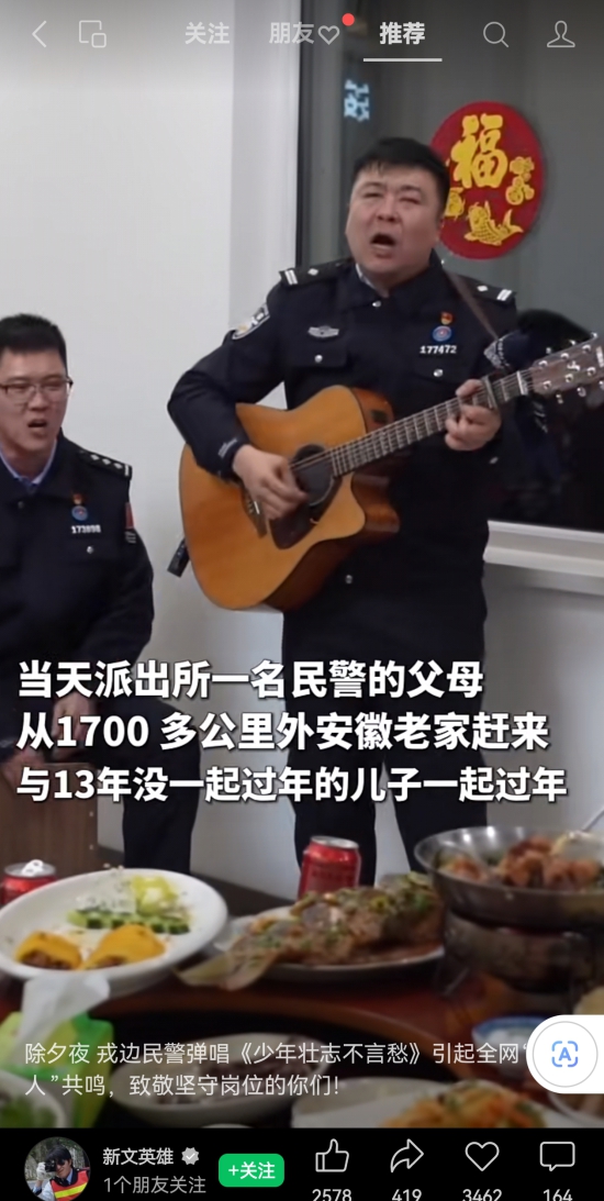 在吉林,一位戍边派出所民警的父母从1700多公里外老家赶来,与13年没一起过年的儿子过年的情景,让人泪目。