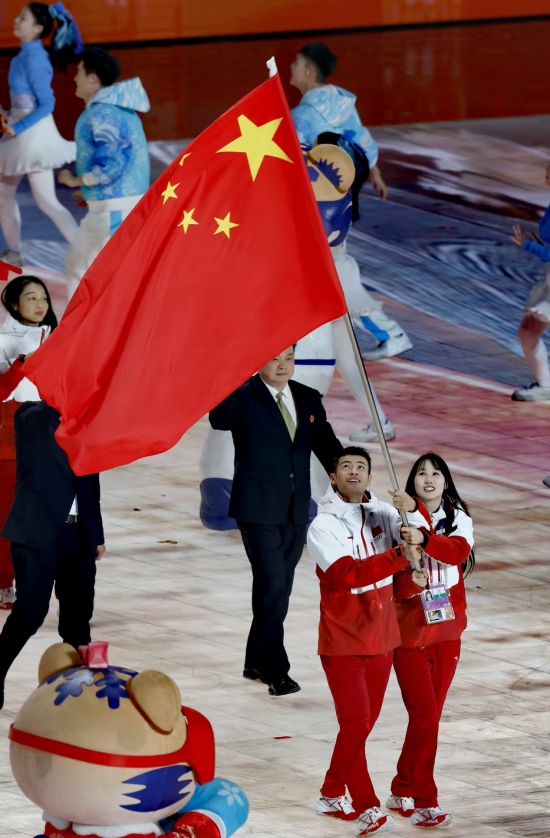 2月11日,哈尔滨亚冬会自由式滑雪女子坡面障碍技巧决赛在亚布力滑雪场进行。本届亚冬会中国代表团旗手,吉林姑娘刘梦婷发挥出色夺得冠军,队友杨如意和韩林杉分别夺得银牌和铜牌,3位中国队选手包揽了冠亚季军。