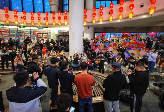 2月11日,长春文旅集团为喜迎元宵佳节,在长春上海路万达、54路文旅专列、这有山、长春桂林路步行街等地,精彩呈现了“欢喜闹元宵 新春音乐会”音乐快闪活动,为市民和游客带来了一场视听盛宴。活动特别邀请了长春市春城爱乐交响管乐团助阵。