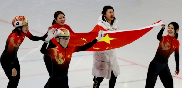 在冰上比赛项目中,张楚桐携手队友在短道速滑女子3000米接力比赛中为中国队夺得金牌。