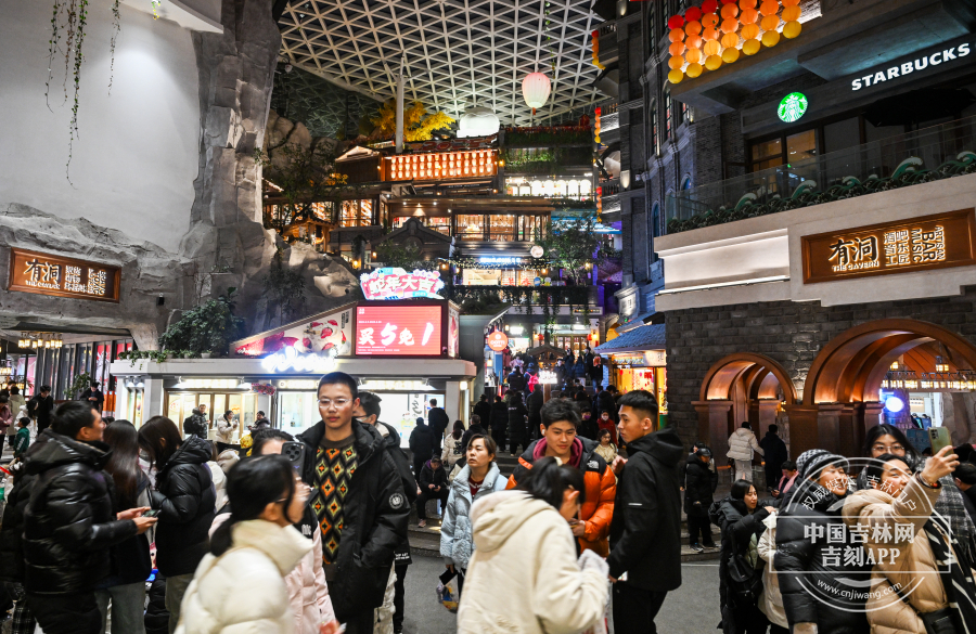 作为长春潮流文旅地标,一到这有山,就被室外挂着的红彤彤的大灯笼吸引住,节日的氛围一下就被拉满。进入这有山,人头攒动,特别热闹。有一家三口来逛山的、有小情侣来吃好吃的、还有好朋友在团圆日感受节日氛围的,一家家店铺里全是挂着笑容的市民游客。“我和闺蜜一起来的,我俩都是外地人,在长春工作,这个团圆的日子,我俩也出来团圆团圆。” 市民陈女士笑着说。刚买完酸奶的市民刘女士把酸奶递给小儿子,牵着儿子的手往“山”上走,“今天过节,我们一家人来逛逛街,吃点好吃的,没想到这么多人。”刘女士说笑着说:“这不是这有山,这是这有人啊!”