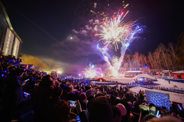 据现场工作人员介绍,从蛇年农历正月初一到十五,莲花岛每天都推出20余场演出,涵盖幽默、悬疑、年代、欢脱等多种类型,让游客们在欣赏烟花的同时,还能共品浓厚的东北年俗,深度感受长春的浪漫与热情。