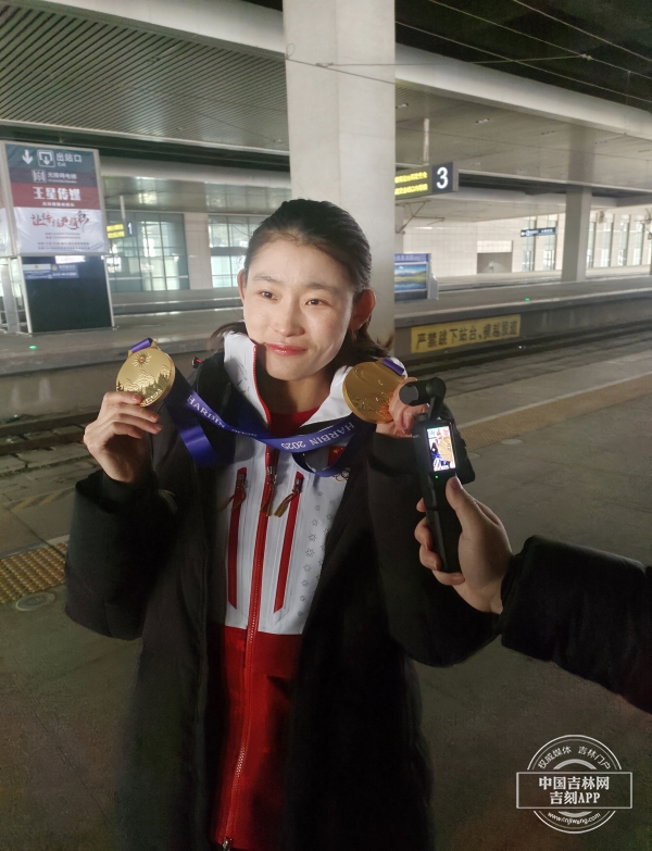 “很感谢大家来到车站接我。这次亚冬会,印象最深的还是拿到第100金的那一刻,真的让自己自信心一下子就有了很大提升。接下来我会努力前行,争取在接下来的越野滑雪全国冠军赛中取得满意的成绩。我也会在以后的比赛中总结经验,刻苦训练,为参加米兰冬奥会做充足的准备。”