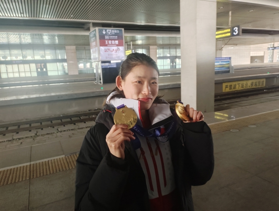 我省越野滑雪运动员李磊,在女子个人短距离比赛中勇夺金牌,不仅成为我省运动员在本届亚冬会的“首金”获得者,更是夺得了中国亚冬会历史第100枚金牌。在后续的越野滑雪女子4×5公里接力比赛中,李磊与队友密切配合,再次夺冠,至此成就了自己在亚冬会上的“双金名片”。