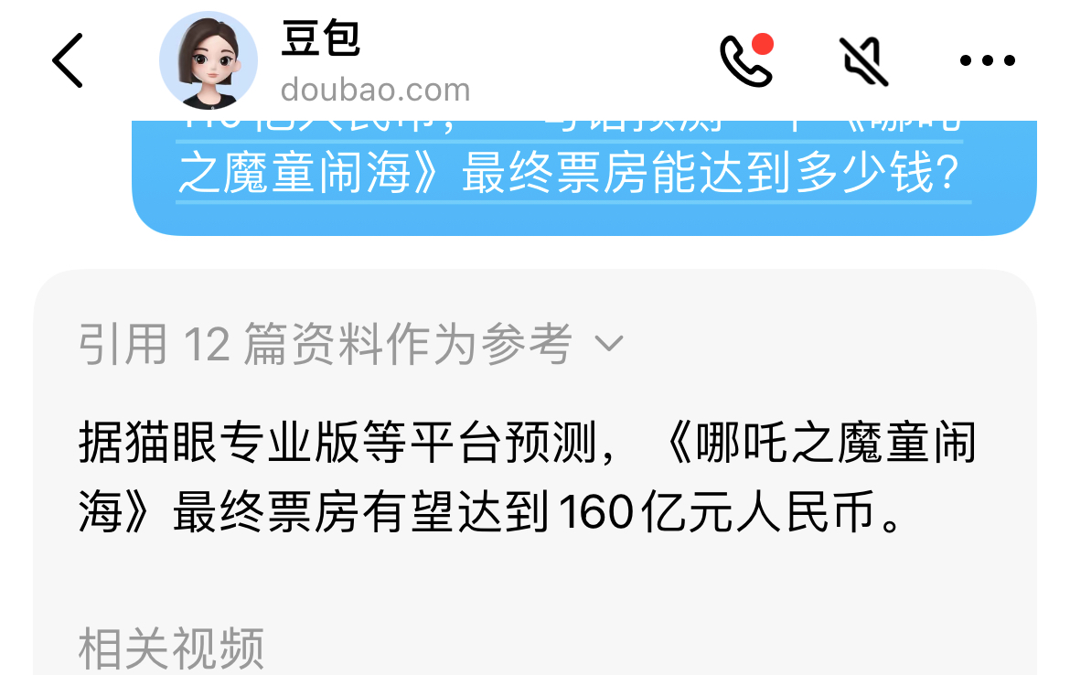 豆包集纳了平台预测,认为《哪吒2》最终票房将到达160亿人民币。