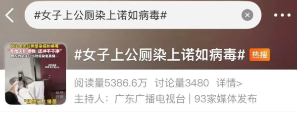 2月21日,#女子上公厕染上诺如病毒#冲上了社交平台的热搜榜,引发网友热议。