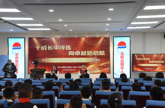 “新学期,新征程,解放大路小学的学子们怀揣梦想、肩负责任,在“解放教育”理念的引领下探索未知,在运动中磨炼意志、在阅读中增长智慧、在实践中感悟成长,在多元评价中绽放光彩。解放学子将以今日为起点,在家校社共育中扬帆远航,书写成长新篇章!”解放教育集团集团长、解放大路小学校党总支书记曹晶说。