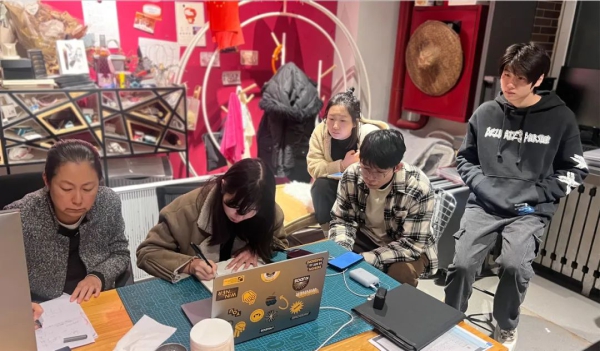 (吉林艺术学院设计学院副院长吴轶博、项目团队主创成员王安旭、冯犇湲)