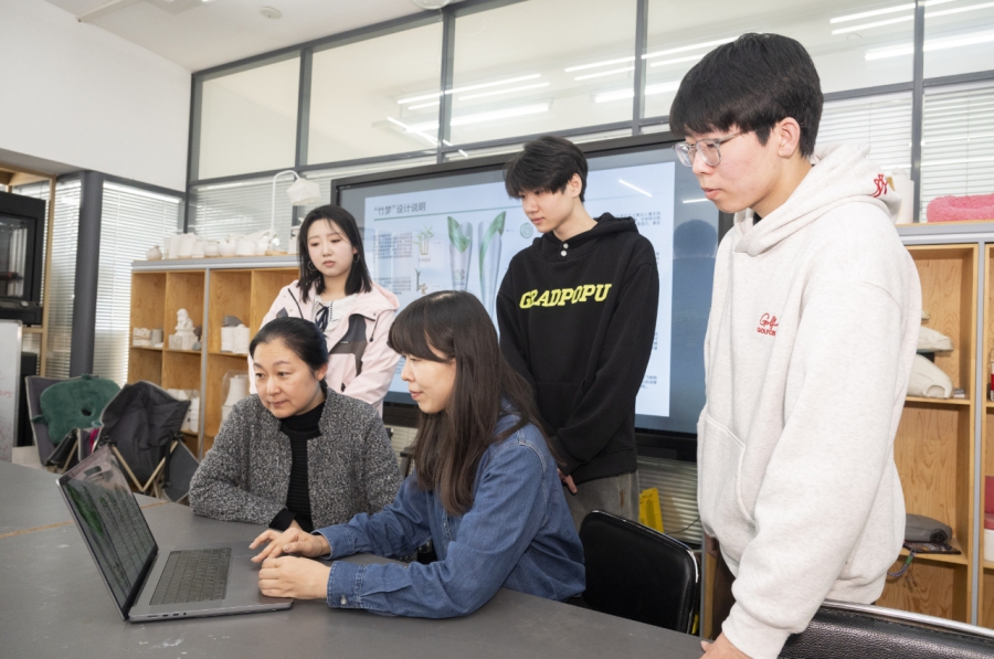 随后,设计学院教师冯犇湲、王安旭、杨颜铭带领学生杜兆宇、姜海云、赵梓煜、岳静雯针对反馈建议,进行了长达一个多月的细节修改与调整,提交近21套修改方案,最终成功让“竹梦”成为世运会火炬。