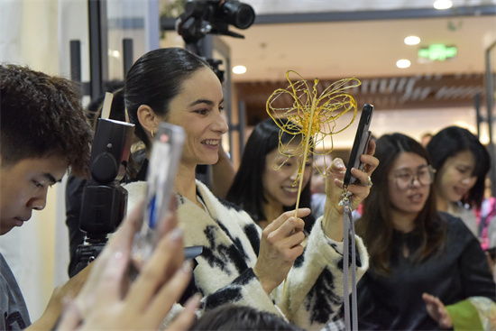 值得一提的是,董氏糖画第三代非遗传承人董天让也来到了此次活动,现场为大家展示糖画制作技艺。活动现场,他精心构思,特意为各位嘉宾制作了很多糖画,精美的糖画引得众人驻足欣赏,也让外国友人近距离感受到了中国非遗文化的独特魅力。