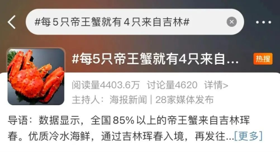 还记得去年社交媒体上那条热搜吗?“每5只帝王蟹就有4只来自吉林”!