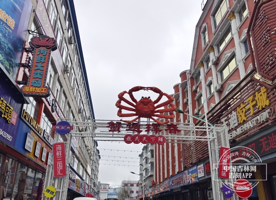在当地,有一条名为“蟹”逅珲春的海鲜一条街,非常出名。入口大门上硕大的“帝王蟹”,极具辨识度。