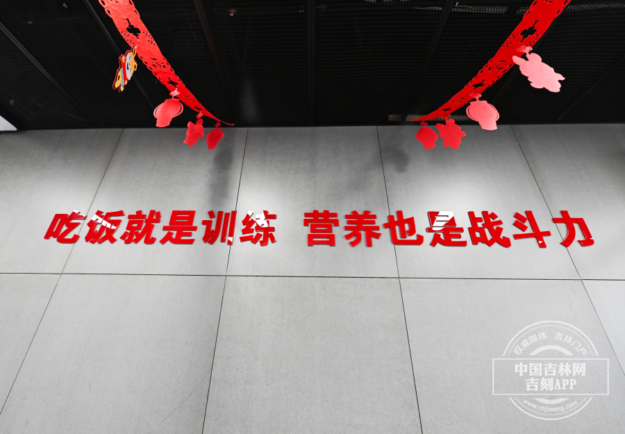 在国家体育总局冬季运动管理中心运动员餐厅内,这13个红色大字格外醒目。