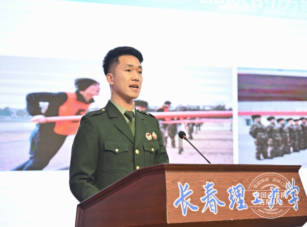 优秀大学生退役士兵代表、长春理工大学廖海城同志也来到现场,2020年9月,他积极响应国家强军号召应征入伍,服役于中国人民解放军陆军装甲兵学院士官学校。他说:“两年的军旅生涯转瞬即逝,这段经历是我人生最宝贵的财富。它不仅赋予我强健的体魄、坚韧的意志,更让我懂得责任与担当,深刻体会到团队精神的力量。战友间生死与共的情谊,让我学会付出与奉献。”