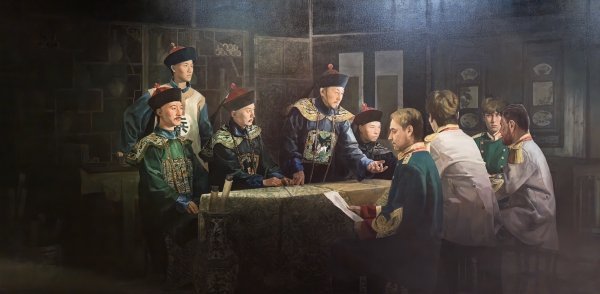 《樽俎折冲——吴大澂系列组画之谈判》(油画翻拍)
