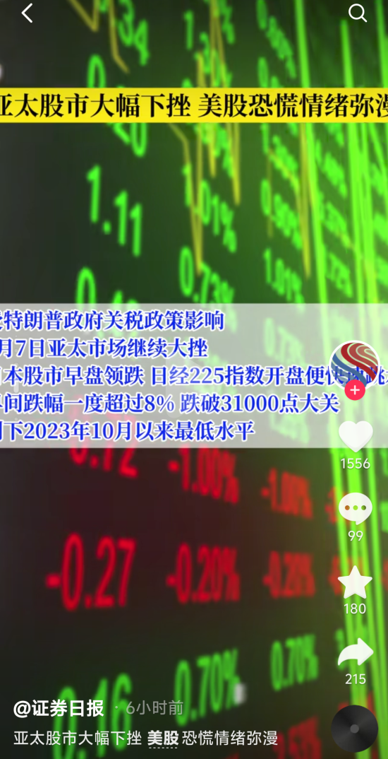 受美国关税政策影响,全球股市动荡加剧,A股、港股4月7日出现大幅回调。