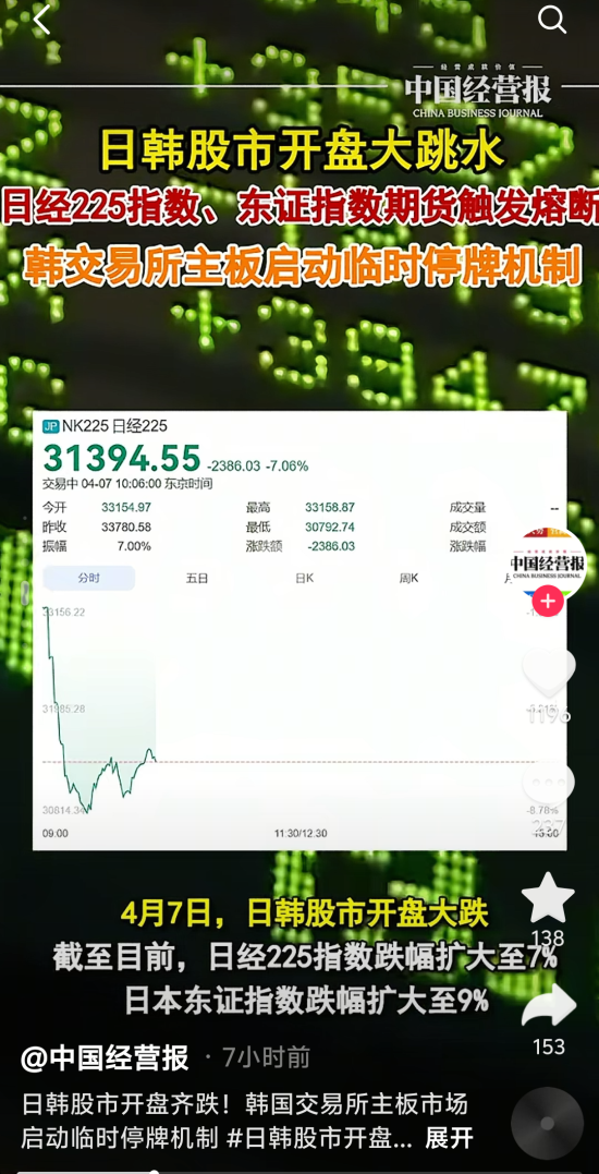 4月7日,亚太股市的表现不禁让投资者直呼“黑色星期一”。当日,在外围市场拖累下,A股、港股也集体跟跌。
