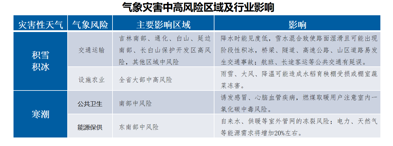本次明显雨雪过程将有利于降低全省森林火险气象等级,且对我省西部旱田增加土壤墒情有利,但会给交通运输、设施农业、能源保供、公共卫生等带来较大不利风险影响,需重点做好防范。