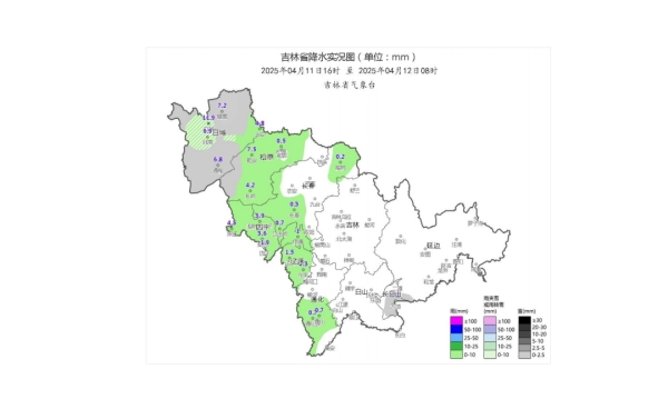 预计12日白天,白城北部、四平东部、辽源、通化有中到大雨,白城南部、松原、长春、四平西部、吉林、白山中西部有小到中雨。