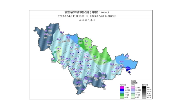 截至14日8时,全省平均降水量34.4毫米,地区分布:通化44.2毫米、长春40.9毫米、四平40.7毫米、辽源37.5毫米、白山35.3毫米、吉林34.8毫米、延边32.7毫米、松原25.9毫米、白城25.5毫米、长白山保护开发区18.4毫米。