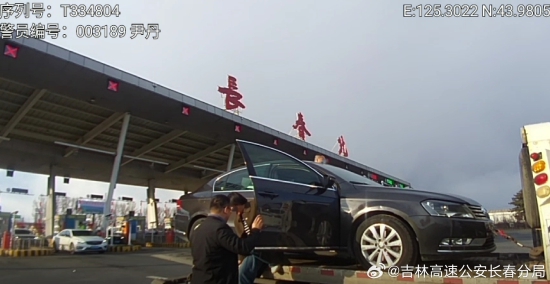 当日下午,大队民警在长春北收费站开展例行检查时,发现一辆正在驶出收费站的清障车后方拖载的黑色轿车内,主驾驶和副驾驶位置分别坐着一男一女。这一反常现象立即引起民警警觉,随即示意车辆靠边接受检查。