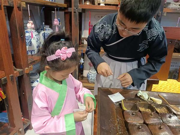 天增永药铺穿越记:跟着药师学习使用“戥秤”称量药材,亲手操作“药碾子”研磨中药,体验古人如何精准炮制药材,探寻传承千年的匠人匠心。