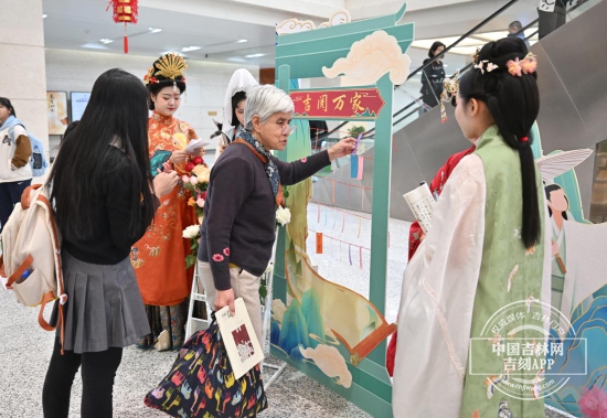 除此之外,工作人员也将“吉阅万家”的宣传推广与汉服文化、诗词互动等融合到一起。身着汉服的工作人员邀请读者在平台上参与诗词互动游戏,只要背诵出指定主题的诗词,或是接对诗句,就能获得一束鲜花。据悉,“吉阅万家”惠民数字阅读平台汇集了8万余本电子图书、16万余集可听图书、800余集在线讲座视频、1亿余条/篇学术资源等,是可供全省人民免费享用的优质数字阅读资源。