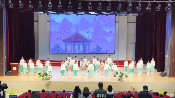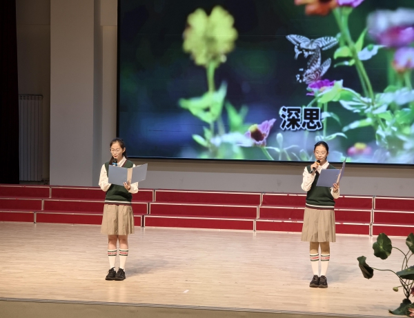 学校报告厅内,阅读成果动态展示活动正在进行,歌舞诗词彰显阅读的厚重,师生同台展现阅读的多元。东师华蕴实验学校二年级同学们带来的舞台剧《书香润童心》,以灵动的舞姿、富有韵律的诗歌诵读瞬间点燃全场。随后,各联盟校精心准备的节目依次登场,无论是《一支钢笔》《望历史长河 兴科技之邦》《吉林赞》《青春万岁》《春天里的中国》的诵读,还是二实验分校《上春山》的歌伴舞,无不展现了少年儿童良好的精神风貌。最后,活动在慷慨激昂的《少年中国说》中圆满结束。
