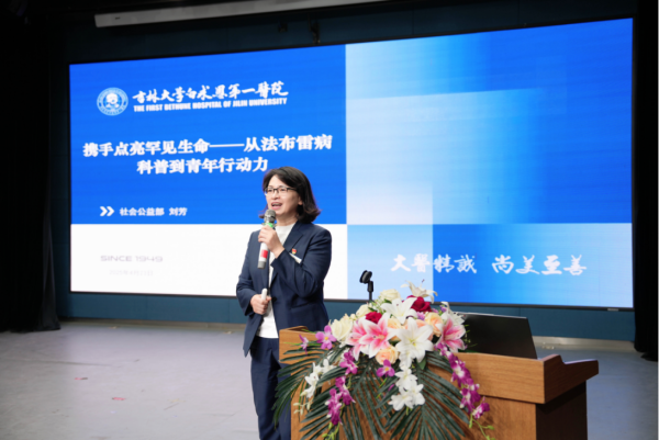 吉大一院社会公益部主任刘芳在《携手点亮罕见生命——从法布雷病科普到青年行动力》的主题分享中,介绍了医院近年来通过医-社-校联动形式积极推动罕见病防治工作,号召青年群体关注罕见病社会议题。