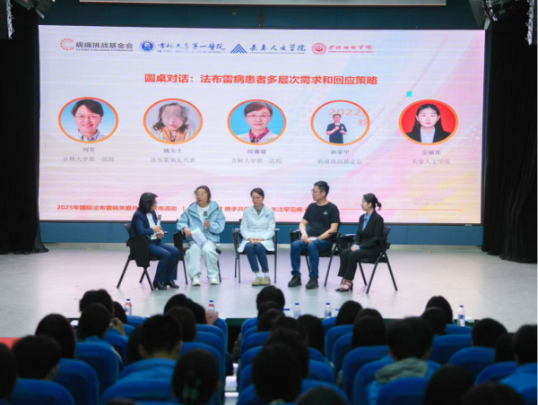 4月23日,为响应“国际法布雷病关爱月”号召,提升公众对罕见病的认知与关注,吉林大学第一医院联合北京病痛挑战公益基金会走进长春人文学院,举办了主题为“认识法布雷,携手共健康——关注罕见病,让爱不罕见”的公益宣传活动。此次活动通过科普讲座、圆桌对话、互动答疑等形式,聚焦法布雷病的防治知识普及、患者支持体系建设及青年公益力量动员,吸引了超过100名师生参与。