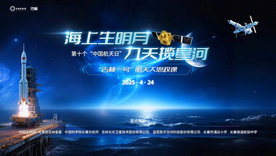 为了纪念中国航天事业成就,发扬中国航天精神,4月24日,第十个“中国航天日”来临之际,中国吉林网联合共青团吉林省委、中国科学院长春光机所、吉林长光卫星技术股份有限公司、蓝箭航天空间科技股份有限公司、长春市通达小学、长春南湖实验中学,共同举办大型特别节目《海上生明月,九天揽星河——“吉林一号”航天大思政课 》。