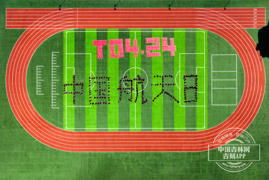 在长春通达小学的操场上,百名师生手持“鳞甲”,在操场上组成中国航天的未来图腾 。