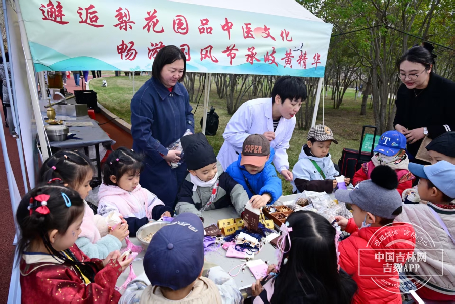 长春中医药大学附属医院中医药专家带领现场小游客辨识药碾、戥秤、药罐等传统药用工具,并进行现场互动体验。八段锦教学区数十名幼儿排起长队,争先恐后来体验中医传统养生功法的魅力。长春市童晟智教鸿城幼儿园魏丽丽园长表示:“让孩子从小感知中华文化的独特魅力,建立文化归属感,是幼儿成长的宝贵资源。通过趣味体验,孩子们不仅能收获快乐,还能在潜移默化中成为文化的小小传承者。”现场还设有中医茶饮台,多种药膳茶饮,满足男女老幼的不同养生需求。“中药香囊DIY”成为最受欢迎的活动之一。