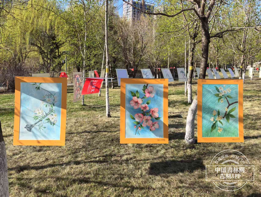 梨园国风文化节现场,还有一处静谧的“森林画展”展示区,这里是自然与艺术的对话,长春市孟飞画室师生结合梨花园自然景观、景区文化,打造沉浸式森林艺术展,让游客在赏花、观画、互动中感受自然与艺术的交融。通过“森林画展+现场创作+互动体验”,让游客在赏花之余感受艺术魅力,为梨花园赋予新的文化内涵。
