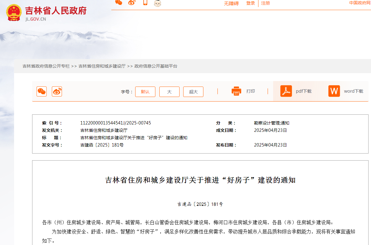 吉林迅速响应国家战略,以政策为笔、以民生为纸,在白山松水间勾勒“好房子”建设的生动图景,为城乡人居环境升级注入澎湃动能。