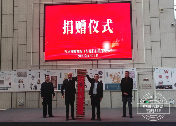4月24日,梁晓源一行来到长春,向吉林省博物院捐赠日伪针织刺绣“万岁”条幅。这文物的捐赠,不仅丰富了博物院的藏品,更为研究东北沦陷史提供了重要实物佐证。吉林省博物院了诚挚感谢,并希望研究会继续支持相关纪念场馆和展厅建设,助力丰富藏品、提升展陈格次,让更多人通过文物感受历史的厚重。捐赠结束后,梁晓源一行在吉林省博物院吉林人民革命斗争史陈列馆进行参观,进一步了解吉林的历史文化底蕴。
