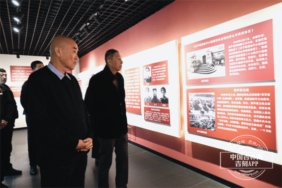 在拉新战斗展馆内,在讲解员的引导下,梁晓源等认真聆听了拉新战斗的历史背景、战斗过程及英烈事迹讲解,细致参观了馆内陈列的珍贵文献、实物及历史影像资料,全面回顾了东北民主联军在解放战争初期浴血奋战、坚守初心的峥嵘岁月。