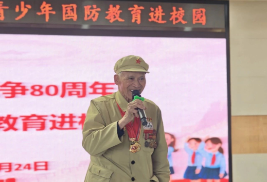 活动现场,93岁抗战老兵劳道贤走上讲台,深情讲述了自己亲身经历的烽火岁月,师生们用热烈掌声向老兵表达崇高敬意。这种以生命历程为教材的传承方式,让青少年直观感受到今天幸福生活的来之不易,更加激发了孩子们刻苦学习,长大后为国防建设贡献力量的热情,正如光华小学四年级学生李雨桐所说:“以前觉得英雄很远,现在听爷爷讲他们的故事,就像发生在身边一样。”