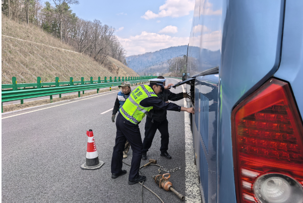 由于车型特殊无法牵引,民警立即联系救援车辆并安抚乘客情绪。20分钟后,备胎更换完毕。为确保车辆后续行驶安全,民警驾驶警车全程护送该客车从就近站口驶离高速。与此同时,现场隐患全部清除,该路段恢复正常交通秩序。