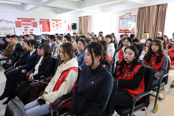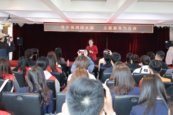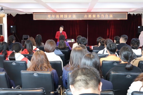 参观结束后,全国“时代楷模”、长山花园社区党委第一书记吴亚琴在社区精神文明实践站,为团员青年作《青年强则国家强 志愿服务当自强》主题报告。她讲述了社区党委以党建引领志愿服务,带领党员、团员和居民志愿者艰苦奋斗,通过“双引双服”“七家七化”等服务实践,将昔日环境脏乱的“龙须沟”,打造成如今和谐宜居“幸福苑”的故事。