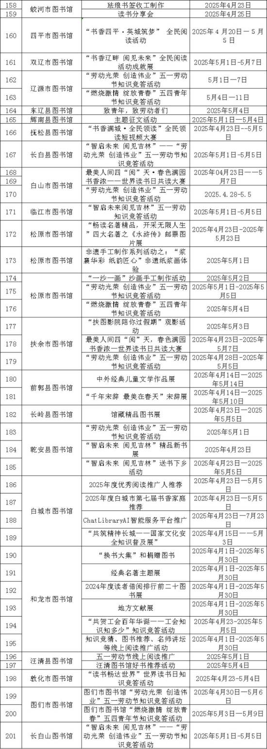 公共图书馆也在五一期间在图书馆服务宣传周后,持续发力,以“智启未来 阅见吉林”“吉图荐书”“换书大集”等品牌为依托,开展图书置换、知识竞答等全民阅读活动,营造五一劳动节期间浓厚书香氛围。