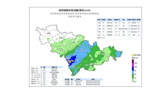 5月2日,中国吉林网从省气象局获悉,受高空低涡影响,4月30日白天开始,我省中东部地区出现小到中雨,辽源、吉林、通化北部出现大雨,部分地方出现暴雨。截至2日08时,全省平均降水量13.6毫米,地区分布:通化36.1毫米、辽源34毫米、吉林29毫米、白山14.4毫米、长白山保护开发区11.9毫米、延边11.0毫米、四平6.5毫米、长春2.5毫米、其他地区基本无降水。