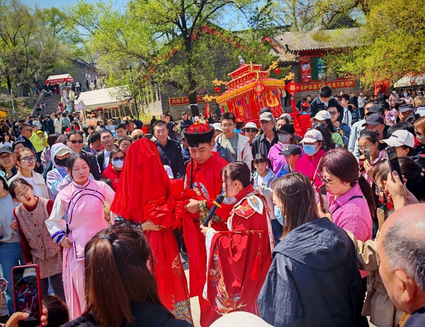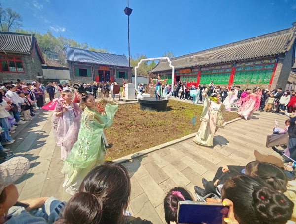 作为今年新增的亮点项目,“十二花神巡游”将复原十二个月份代表的花神形象,演员身着华美服饰在景区全场巡游表演。此外,现场还有皇后迎宾、满族婚礼、敦煌飞天舞蹈等多元文化展示,营造出丰富多彩的文化氛围。