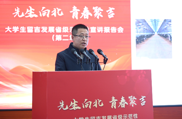 为纪念五四运动106周年,深入学习贯彻习近平总书记关于青年工作的重要思想和习近平总书记在听取吉林省委和省政府工作汇报时的重要讲话精神,近日,团省委联合省委组织部、省委宣传部、省委统战部、省委社会工作部、省工商联、省教育厅、省人社厅、省边境村工作专班在吉林农业大学举办“先生向北 青春聚吉”大学生留吉发展省级示范性宣讲报告会(第二场),400余名学生现场参加,省内高校学生、西部计划“卫国戍边”志愿者、“百名硕博助振兴计划”成员等线上参加。