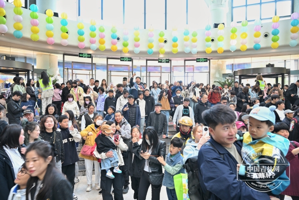 汹涌的人潮中,五湖四海的方言此起彼伏。有牵着孩童的年轻父母,有手挽着手的年轻情侣,还有精神矍铄的银发老人。来自杭州的徐女士带着10岁的儿子,一边排队一边和孩子聊天:“这个商场把整座山都搬进了室内,等会我们可以吃好吃的还能玩好玩的。"