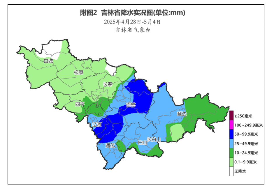 上周,我省降水明显偏多。全省平均降水量22.6毫米,较常年多78%。其中,白城、松原、长春、四平和延边比常年少8%~94%, 其他地区较常年多38%~245%。