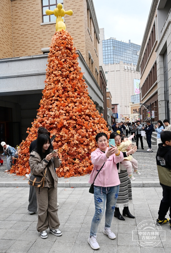 一踏入街区,复古与新潮交织的气息扑面而来。百年老建筑错落有致,红砖灰瓦、古朴墙体,与周边的现代高楼形成鲜明对比,让人仿佛时光穿梭一般,瞬间回到了百年前的“老长春”。而街头8米高的巨型娃娃,更是成为了游客们争相合影的“明星地标” 。